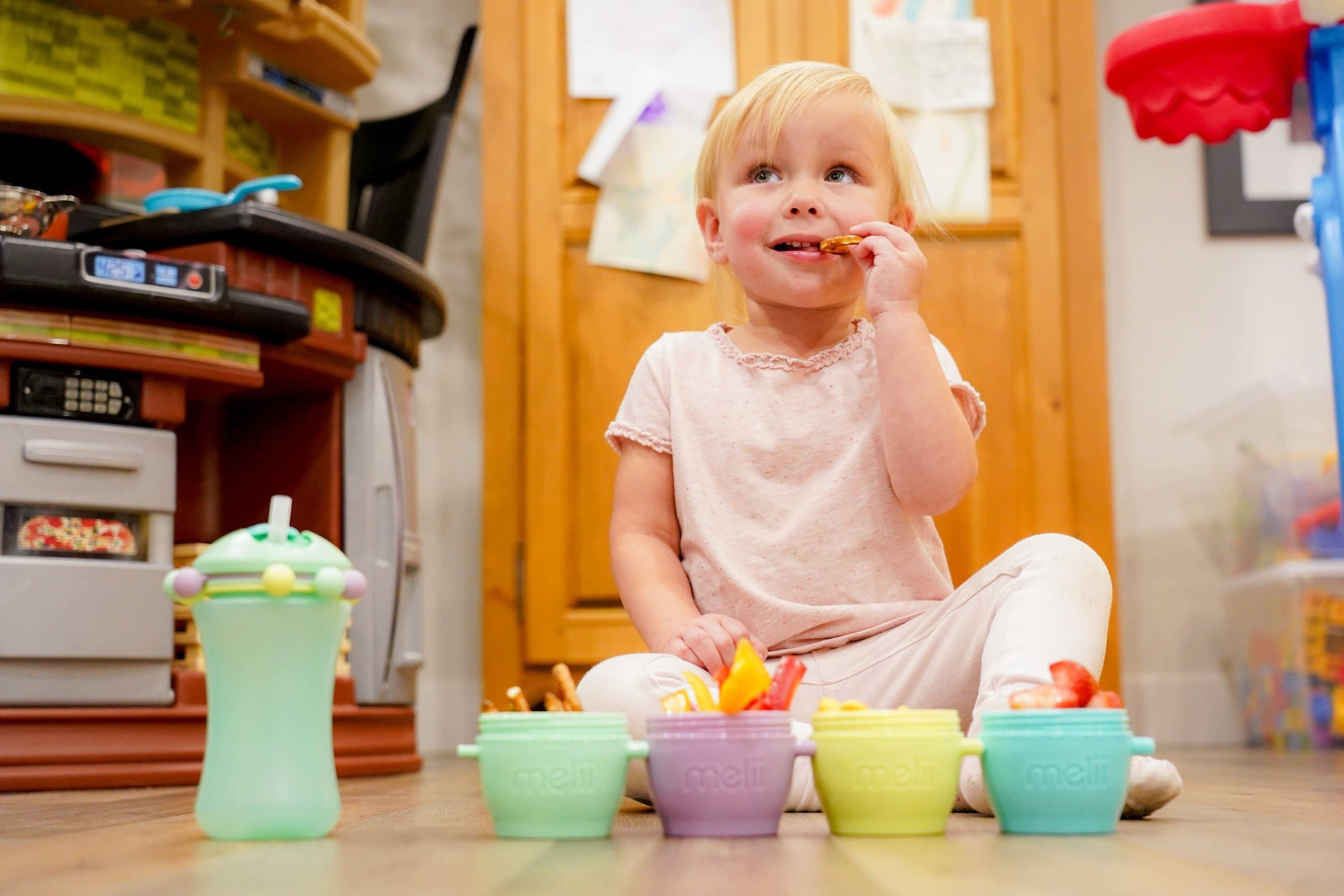 We put our fun Melii spin (no pun intended) on a sippy cup! This sippy cup doubles as a fun toy - your little one can have fun spinning, counting and playing with the multicolored beads attached to the sippy cup. Great for at home or on the go, this sippy cup is easy for your child to hold and encourages independent drinking. With a capacity of 340 ml or 11.5 fluid ounces this sippy cup is the perfect size to keep your active little one hydrated throughout the day.
